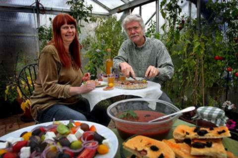 Angela och Tommy pustar ut i sitt växthus efter allt fotograf-