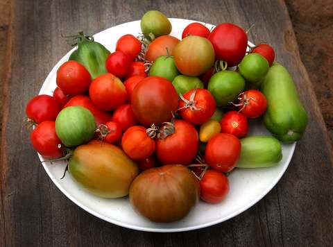 svarta tomater. Alla hamnar så småningom i de mest skiftande