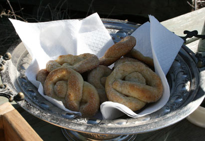 Rulla ut varje bit till en kringla. Doppa kringlorna i strösocker.