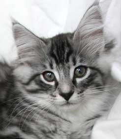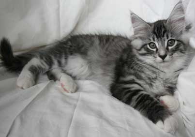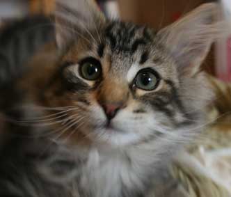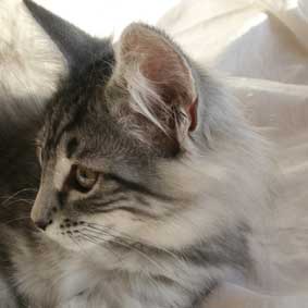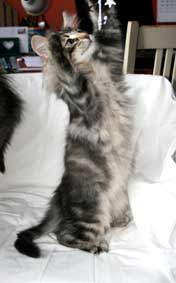 | Katitzi är en rekorderlig tös, när jag kommer så ska alla ställa upp. Finns det ett tyg eller filt nån stans så ska jag vara under och där försöker jag ge mina kattbröder ett litet tjyvnyp. Men jag tycker också om att mysa och bara ha det sköööönt. | ||